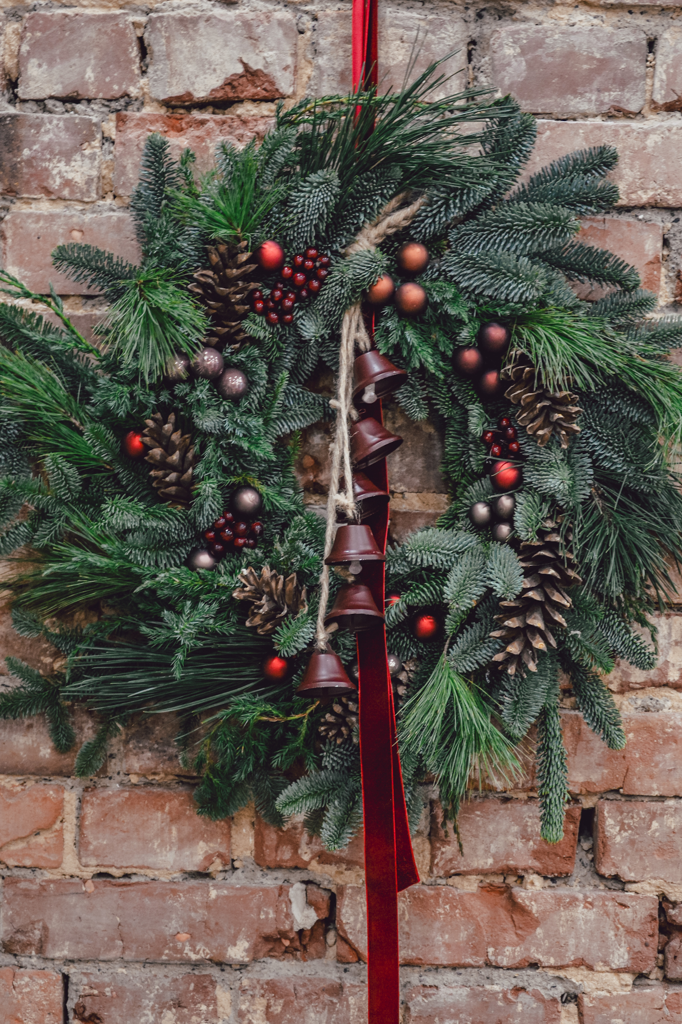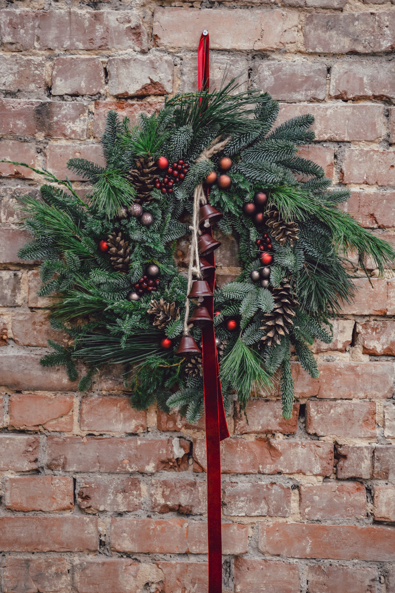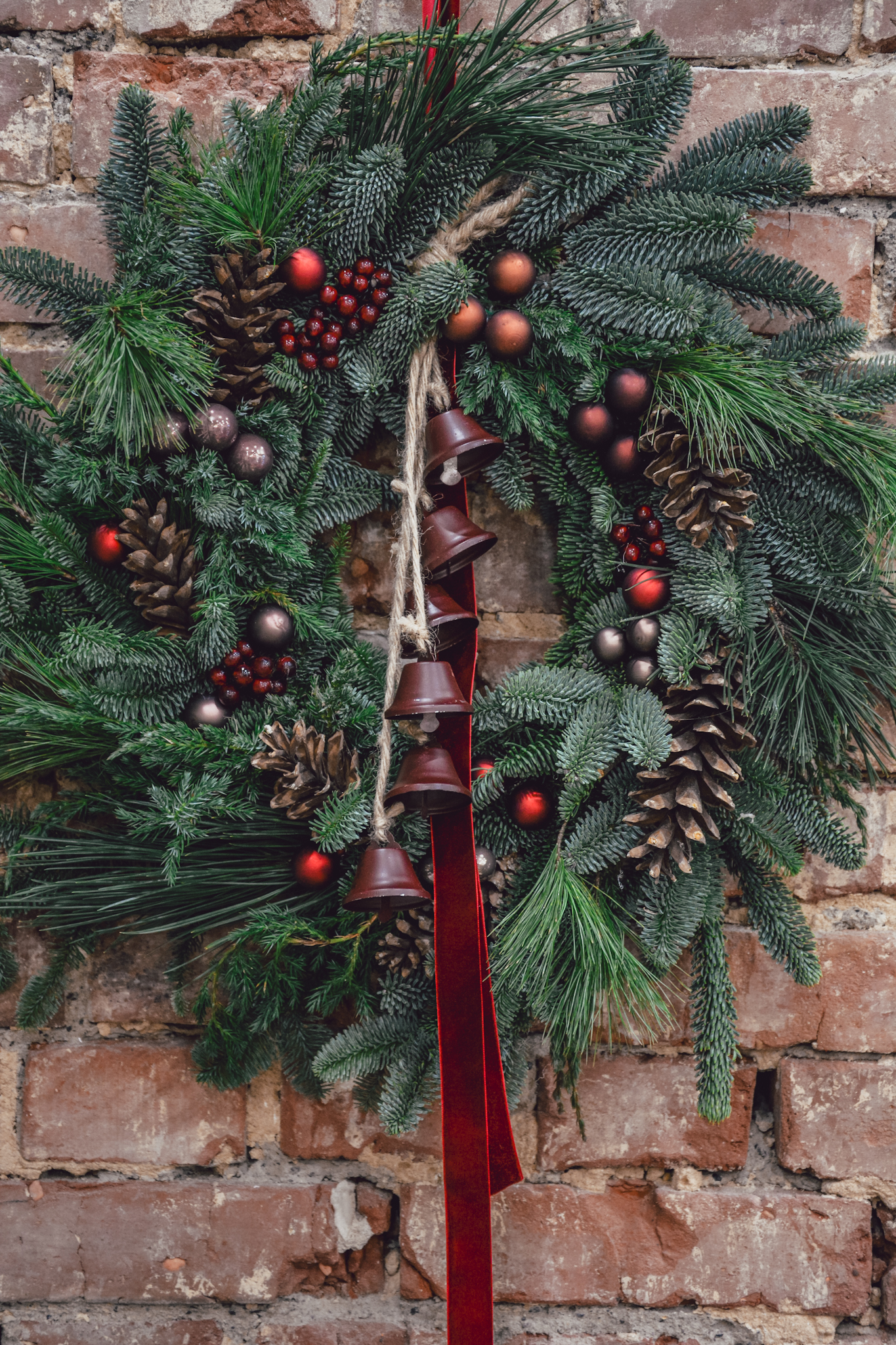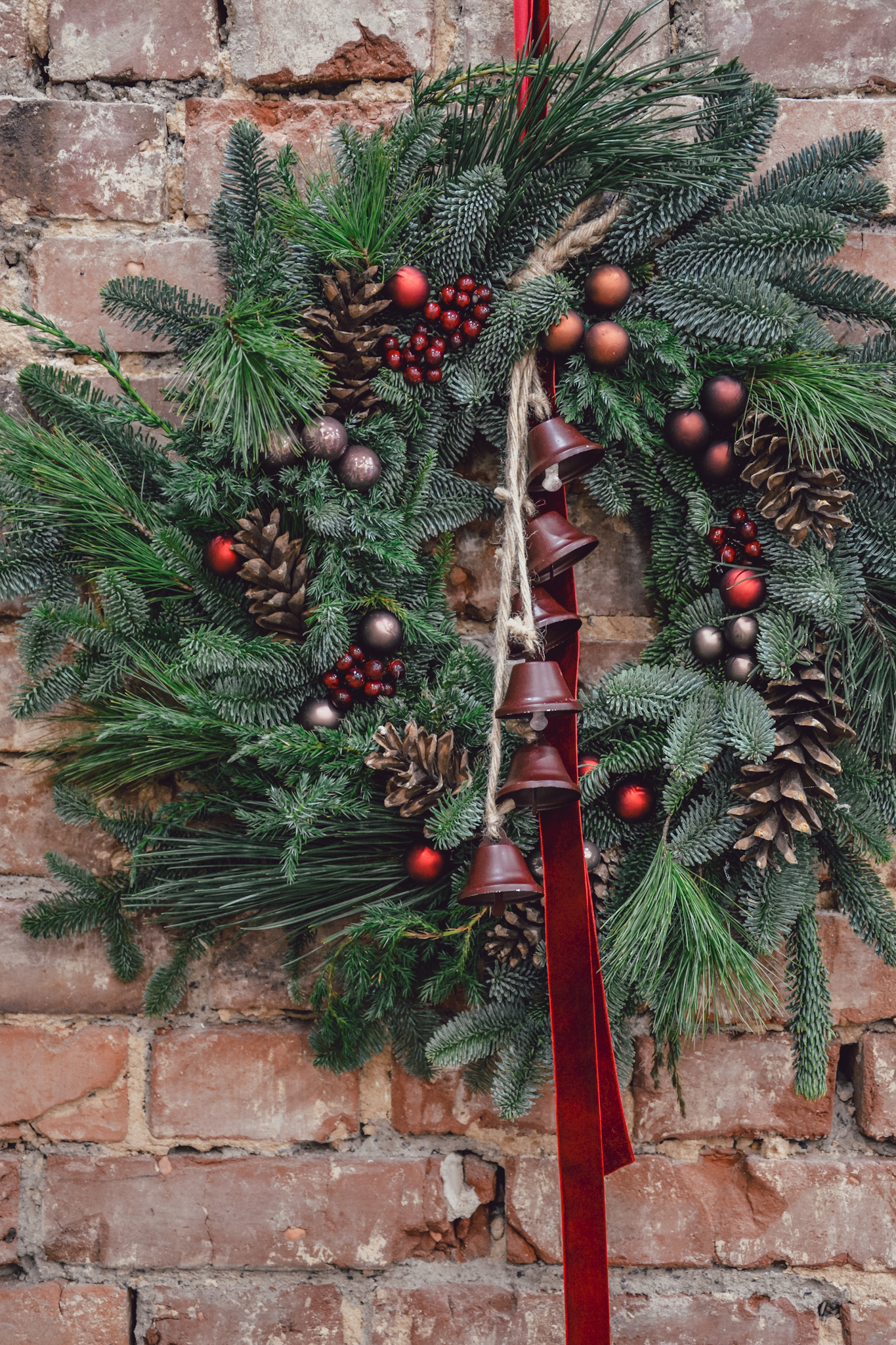 Wianek z sosną i eukaliptusem, na bazie jodły nobilis.